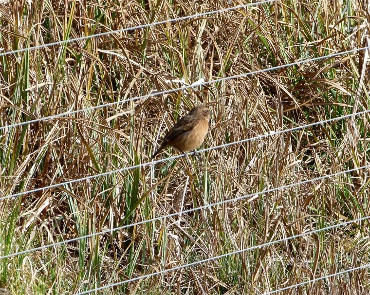BIRDS ON A WIRE – A PAIR OF STONECHATS IN FEBRUARY SUN
