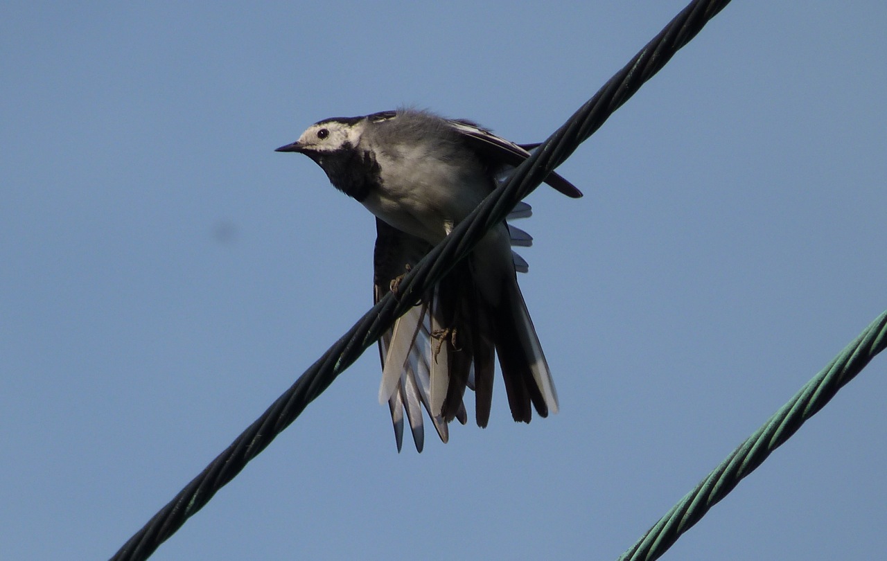 PIED WAGTAIL PREENING IN EVENING SUNSHINE