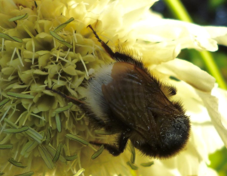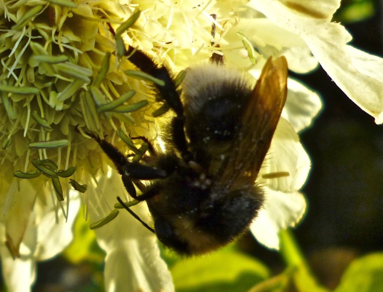THREE BUMBLEBEES FEEDING ON ONE FLOWER – DORSET