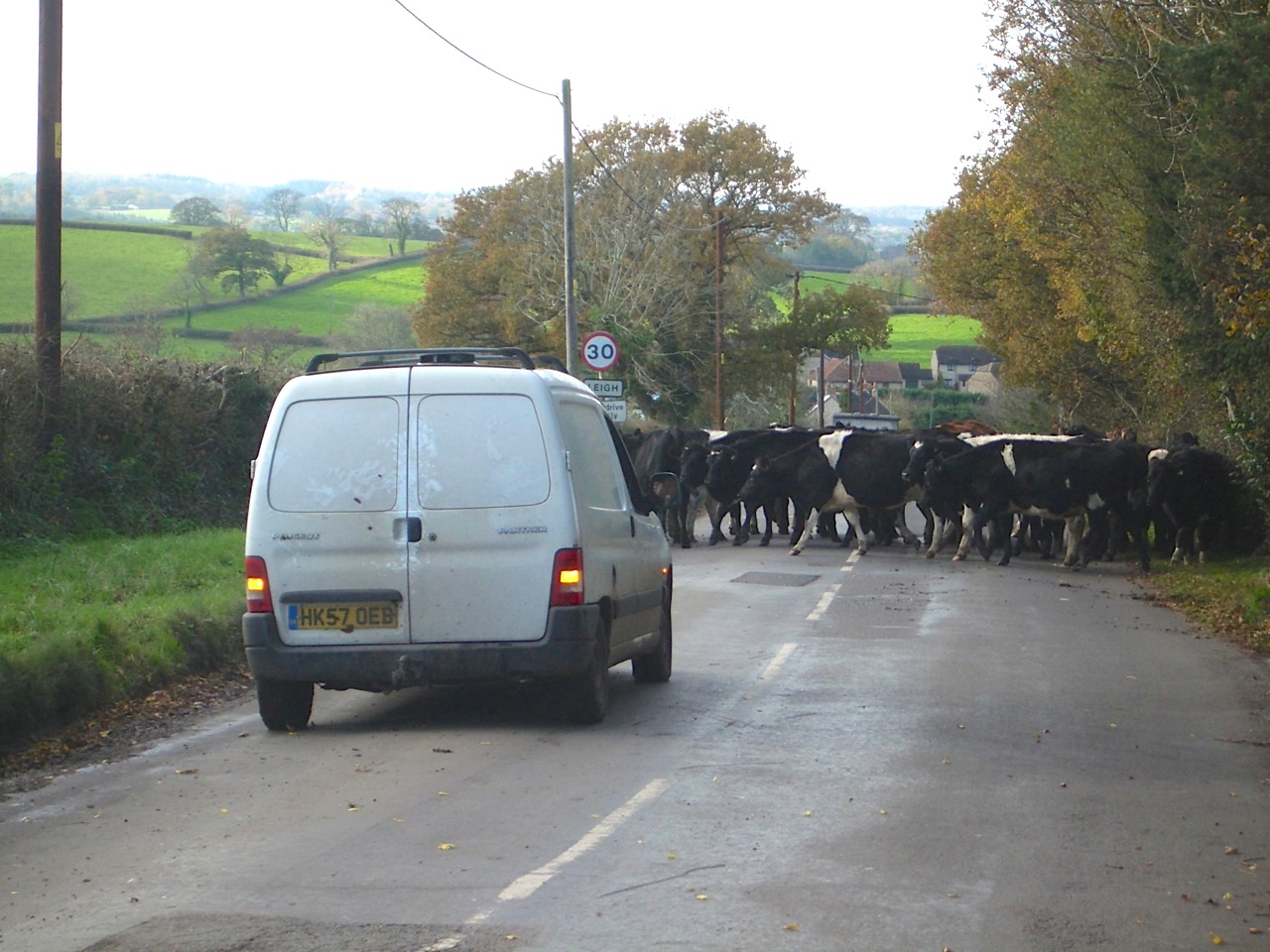 Returning to a more pastoral theme, there are several farms in the village that use nearby fields outside the village for their stock. This entails the regular herding of cattle from farm to field, and in due course back to the farm. Gates are shut. Men with sticks are stationed at junctions to ensure the kine don’t charge down a side road. A tractor precedes the procession, discouraging overtaking by its Massey presence. A van drives behind the herd to encourage the slow forward progress, the sides being banged vigorously when cows begin to hang back. And so they move along the same route as they did in Thomas Hardy’s time and before that, passing our house and leaving copious evidence of their healthy diet in their wake. As they did last week.