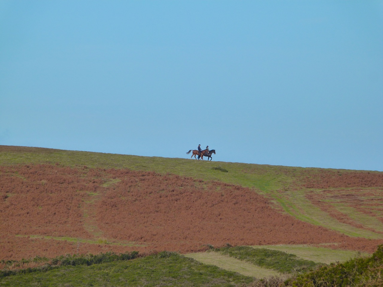 As we walked down, a pair of riders from a nearby stables passed on the skyline