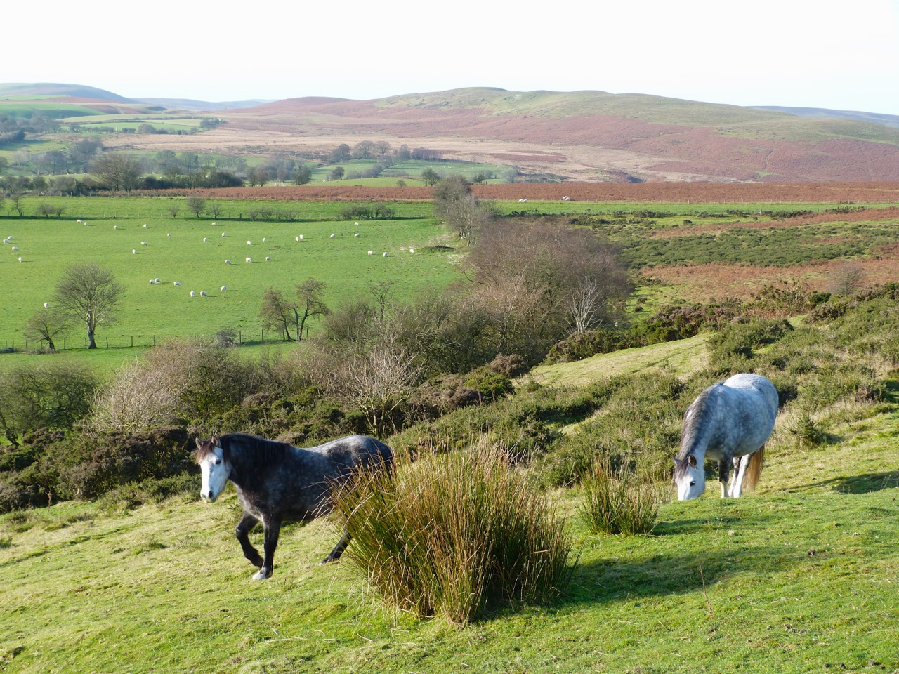 And horses. Most are wild, in that they are mainly left to their own devices all year round. They are a mix of Welsh mountain ponies, Welsh cobs and perhaps some pit ponies, with other breeds adding to the genetic mix over the years. The greys are the purest bred.