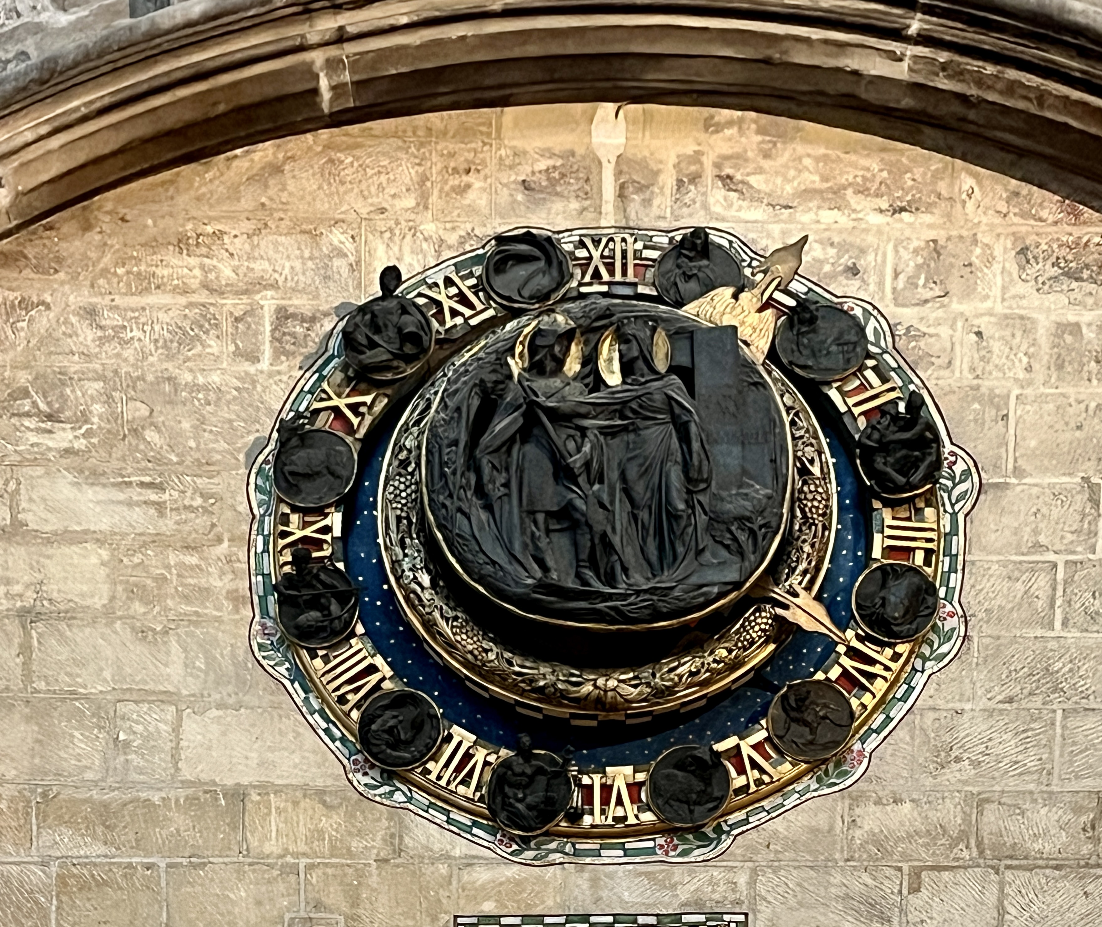 ** This one may be a double bluff. It’s possible that the modern water spout to the side replaces an old pipe that emerged from the clasped hands of the priest, and channelled the rain water even as he prays. On the other hand, the aperture isn’t quite right for that. I need to check that tower again to see if any of the other 3 are water-spouting gargoyles…