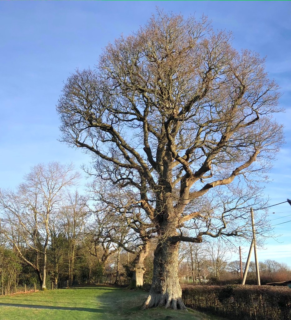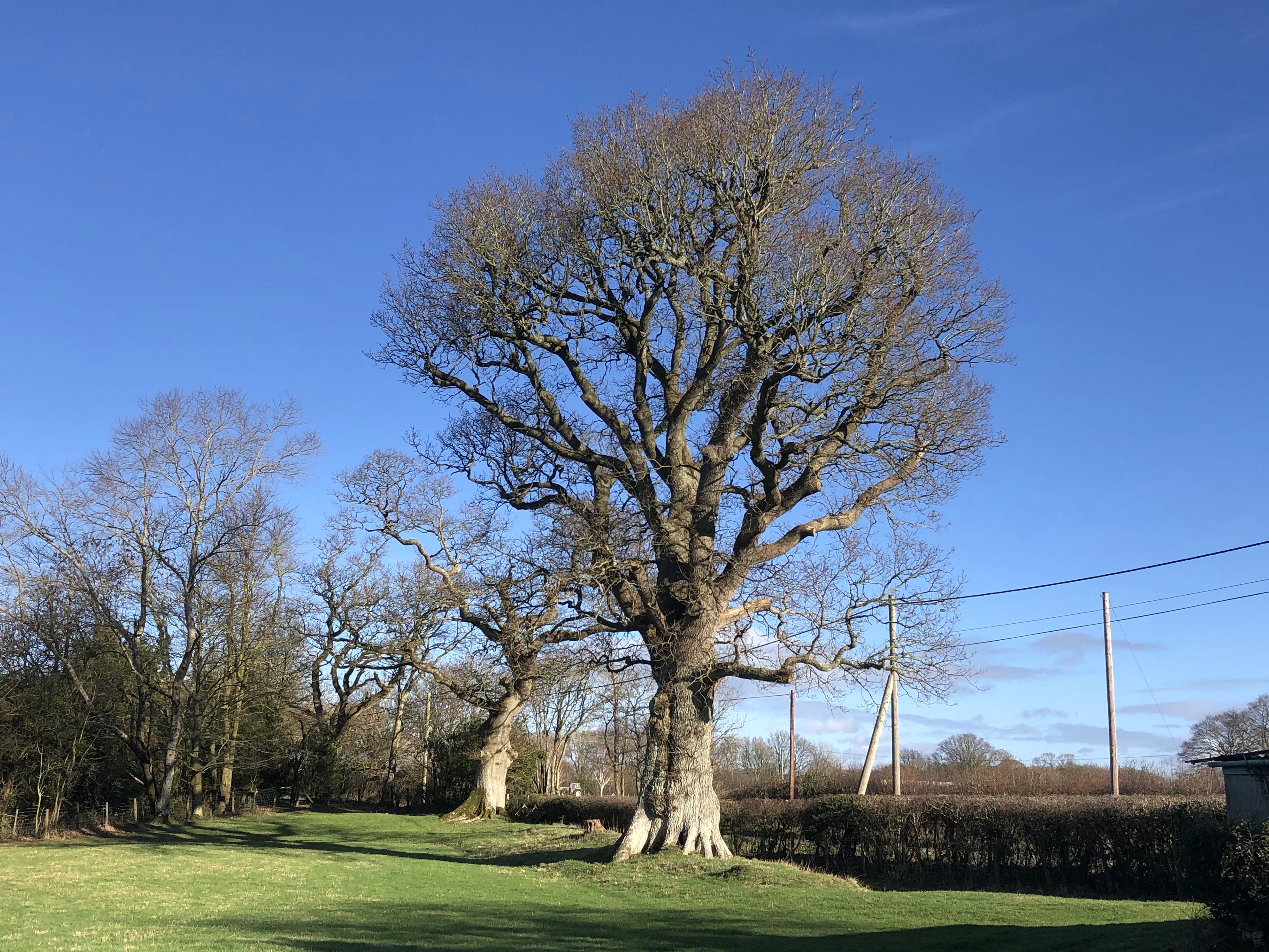 This huge tree has recently been officially classified as an Ancient Oak. Oaks have three notional ages during their expected lifetime of 900 – 1000 years. This one, middle-aged, is about 550 years old. There are signs that it is just beginning a very slow decline towards becoming one of those misshapen gnarled oak stumps that date from Norman times.