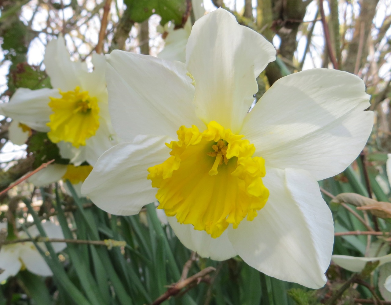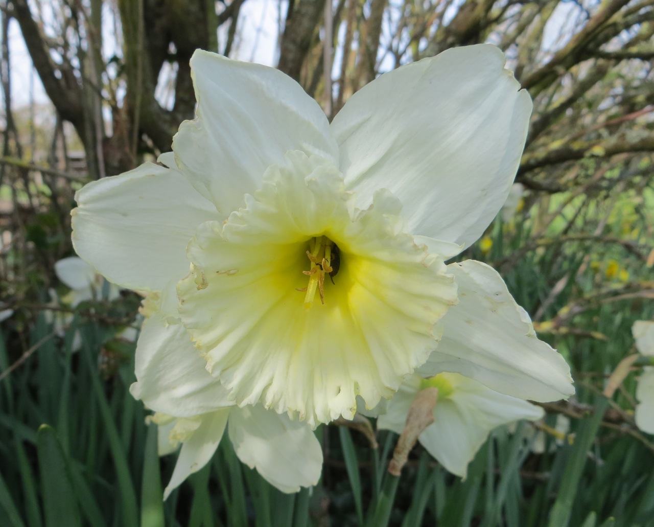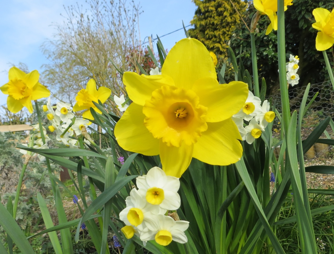 We’ve been away from Dorset for 4 weeks. We left a cold, still-slumbering winter garden and have returned to a colourful Spring one with birds, bees and butterflies. I took a look at the daffodils that are rather randomly dotted around. We let them decide where to grow, and occasionally divide a clump to spread them around a bit. I found eight varieties, of which I only know the name of one (pheasant’s eye) and a half (the half being our nickname for it, see below).