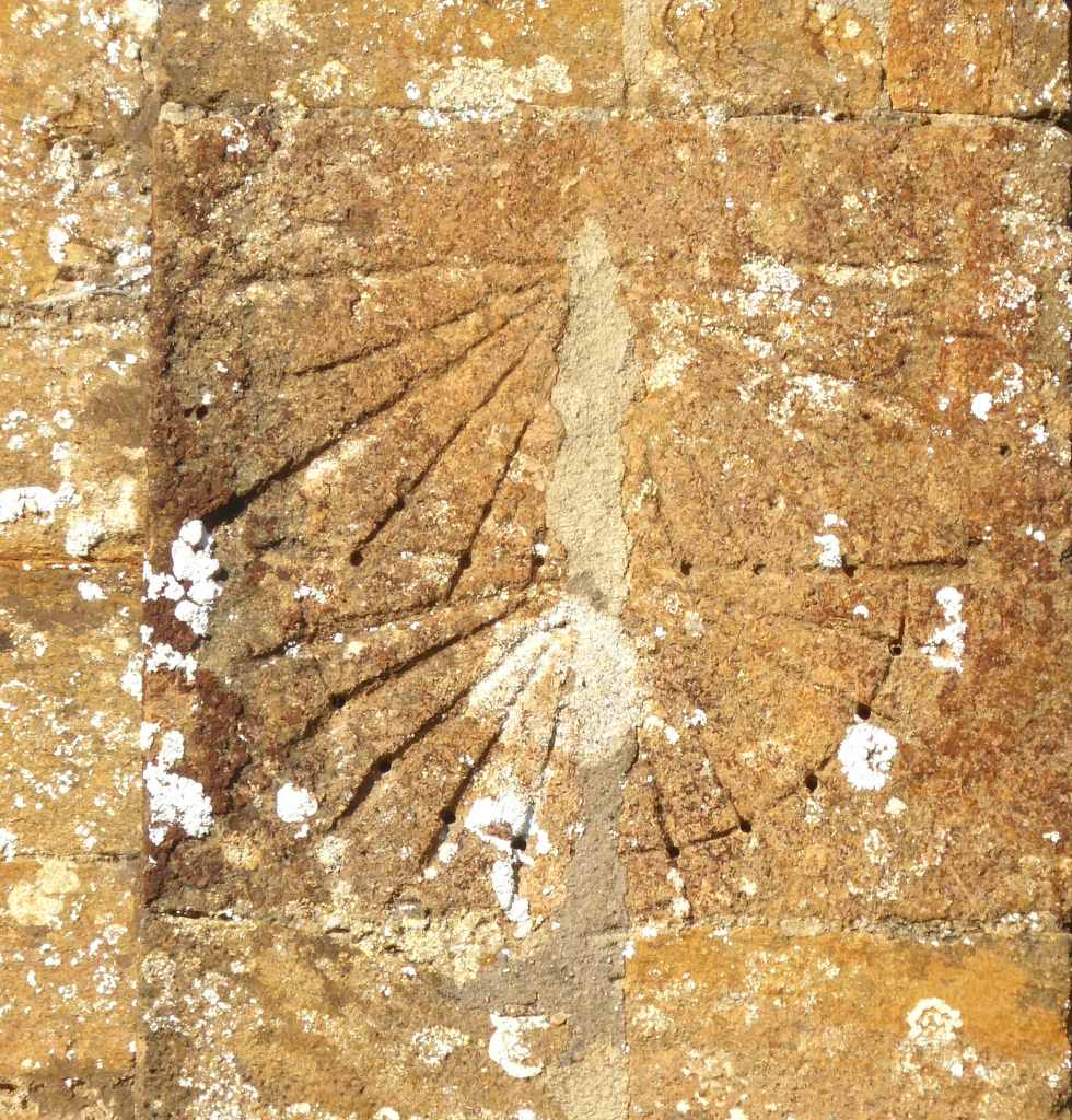 St Laurence, Holwell has 3 dials in a group on a buttress. Two are quite large and sophisticated. In the top half of the faintly encircled lower dial, there’s a small more rustic dial as shown in the diagram above (you can just see the style hole on the photo)