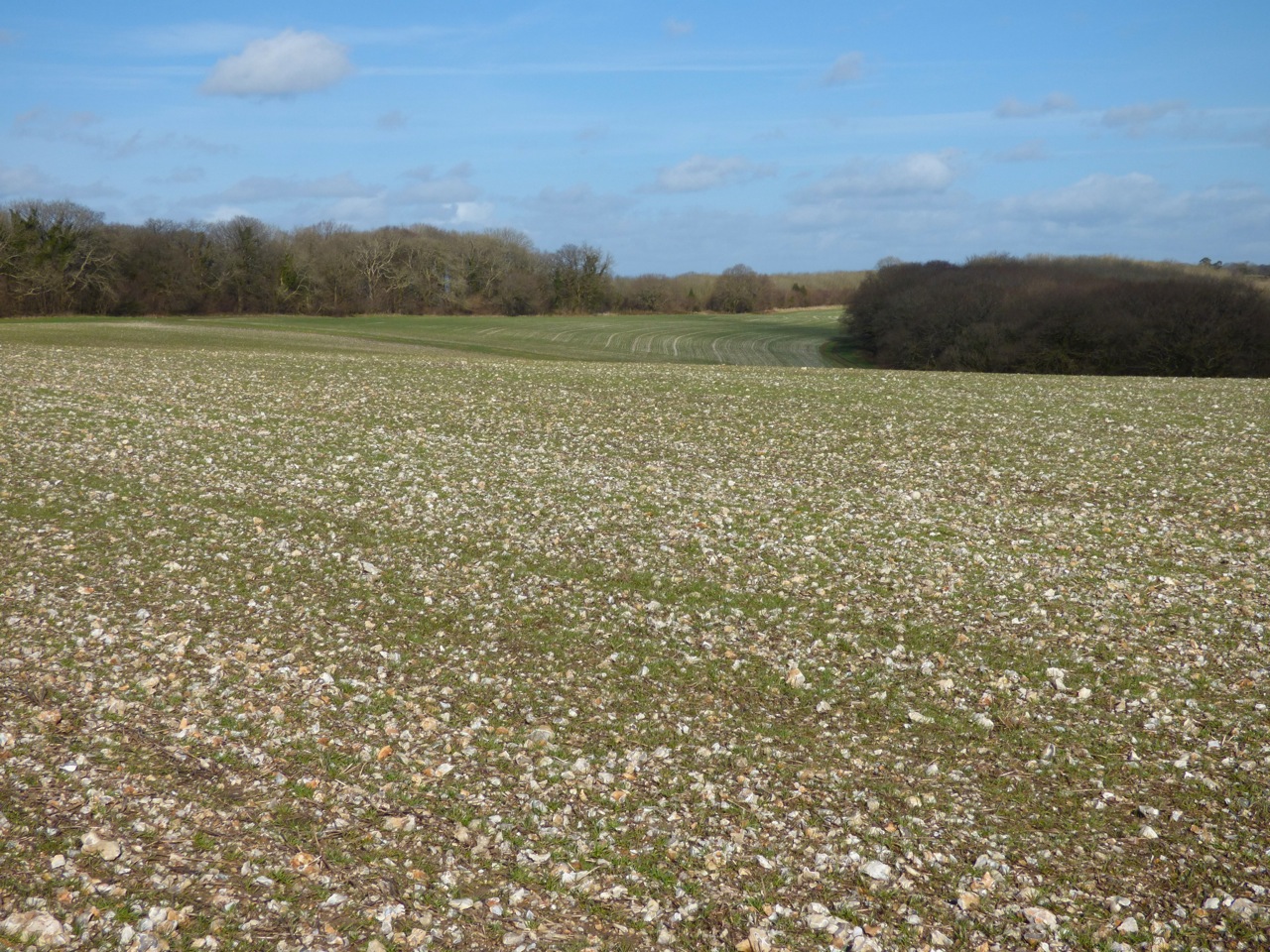 St. Catherine’s Down is a chalk down near the southernmost point of the Isle of Wight, rising to 240 metres above the level of the nearby sea. There is a rewarding walk from a car park on the road, climbing steadily and in places quite steeply. On the way up there are spectacular views across to the Needles to the west.