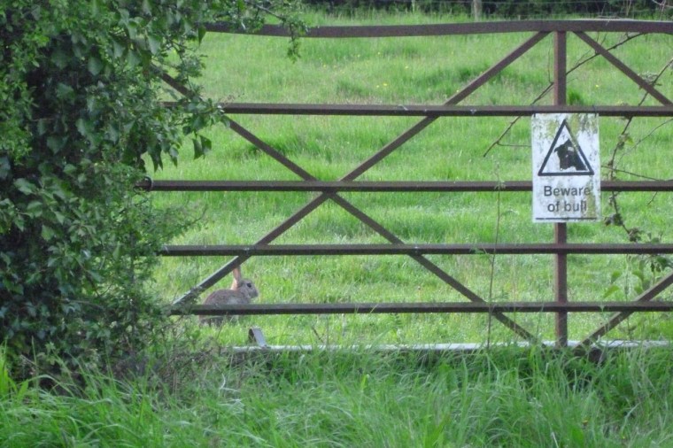 COURAGEOUS RABBIT, DORSET Oh thank goodness! Another “-ine” entrant, and not before time, from outside our kitchen door. This fearless rabbit has ignored the stern notice… There are more of his friends digging up the vegetable garden, and my heart is hardening towards the bunny community. Beware of ME