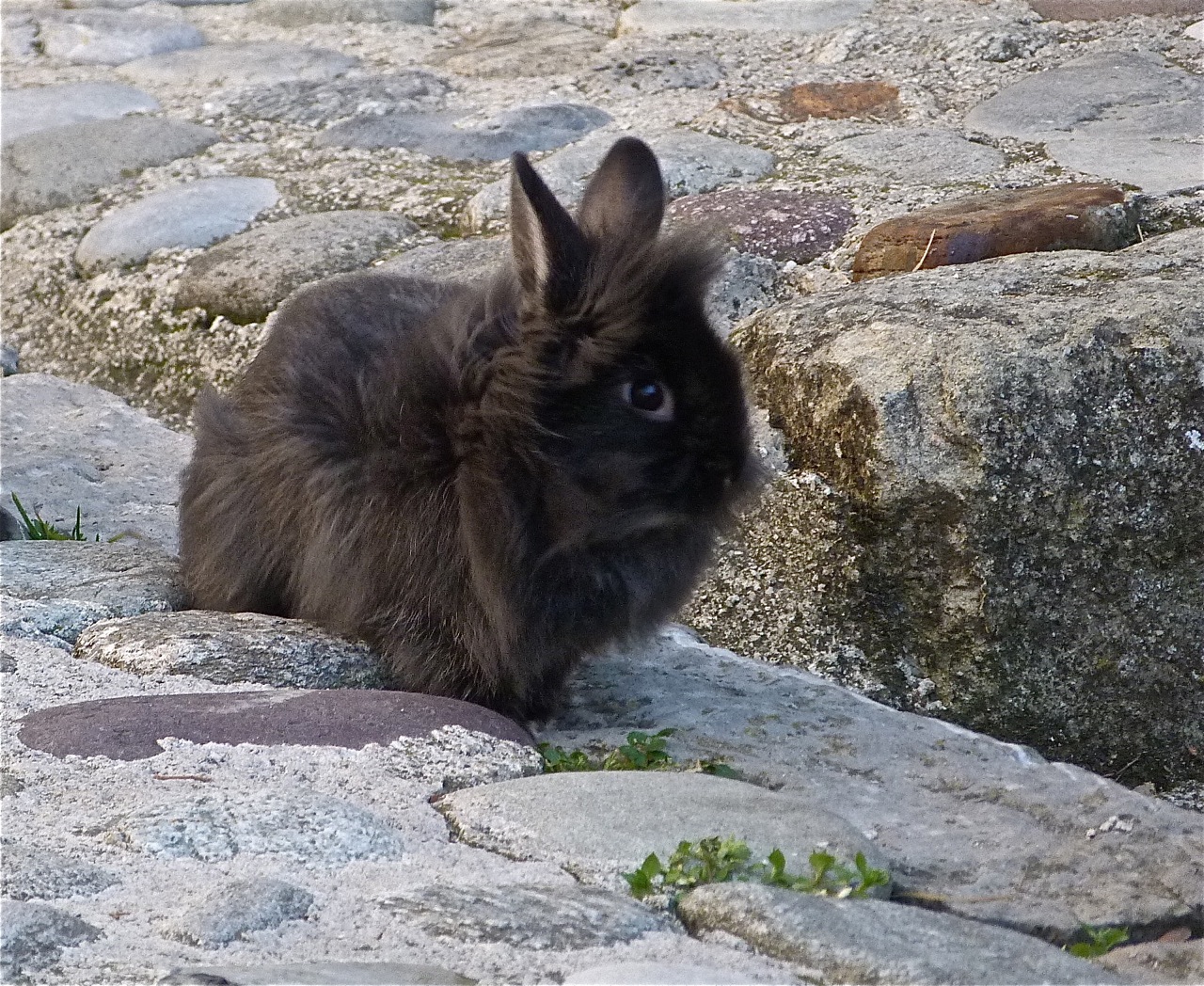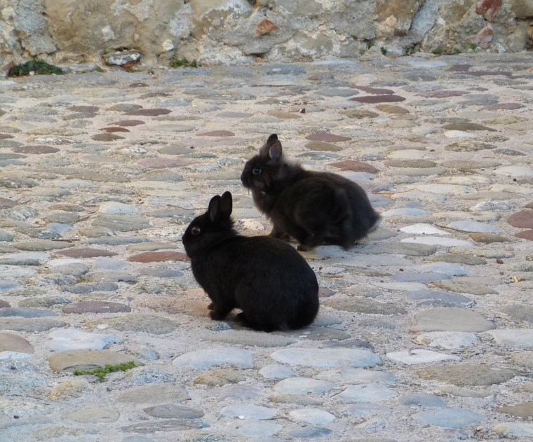 PET RABBITS ON THE LOOSE – CHURCH SQUARE, COARAZE, FRANCE