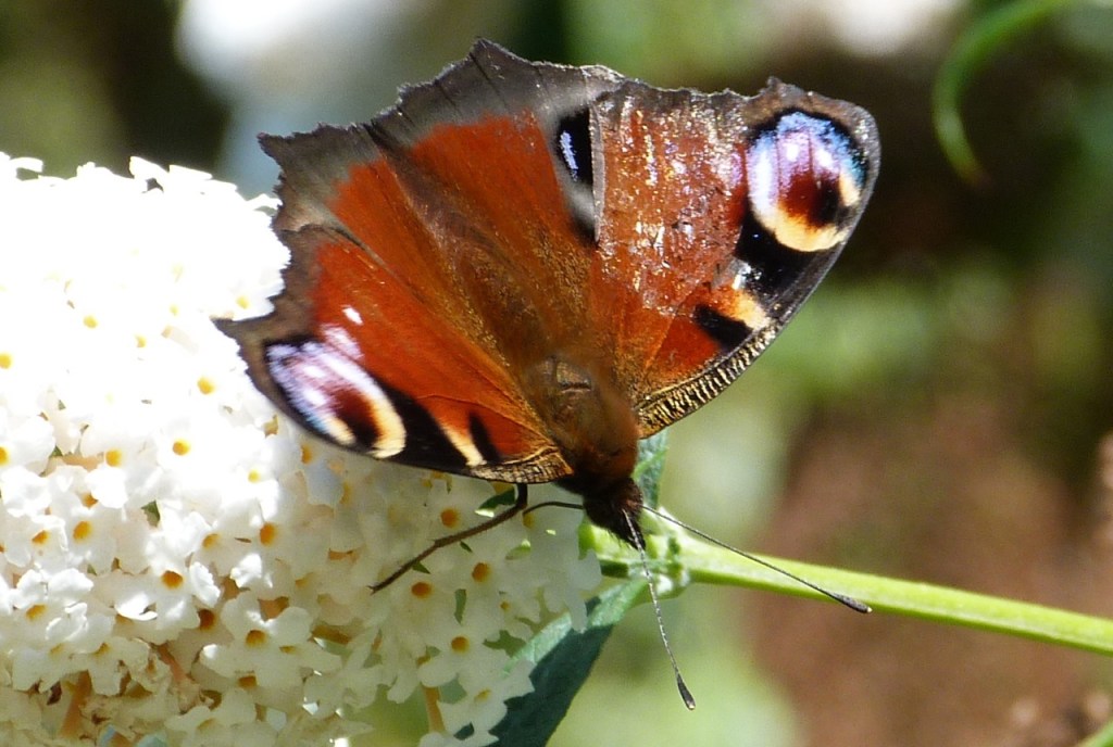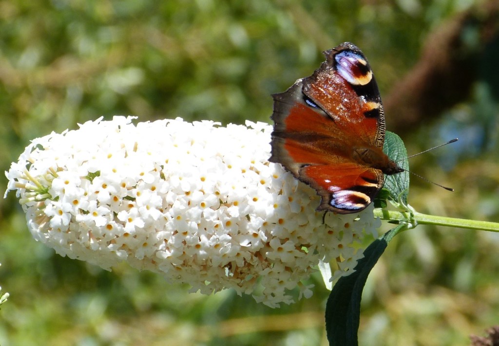 PEACOCK BUTTERFLIES ON WHITE BUDDLEIA – DORSET