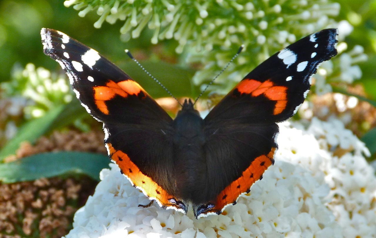 RED ADMIRAL BUTTERFLIES ON WHITE BUDDLEIA – DORSET