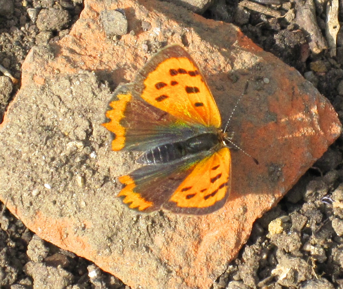 Putting aside thoughts of a ‘Two Ronnies’ sketch about policemen in Dorchester, the small copper referred to was a butterfly I photographed yesterday. I only had a tiny Canon with me (hello, ‘Two Ronnies’ Church sketch), with its ‘battery dying’ light flashing and no charger to hand. So these pics are the best I could get in a hurry…