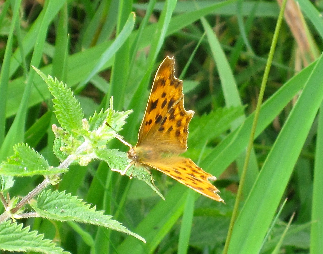 I can’t remember when I last saw a Comma, but yesterday there was one fluttering around me as I fished on the Frome. I’d forgotten how comparatively large they are. I only had a tiny camera with me, one that doesn’t matter if it goes in the water. It’s for recording fish, should I ever catch one and have a free hand available as I remove the (barbless) hook and release the fish as quickly as possible. In practice, never.