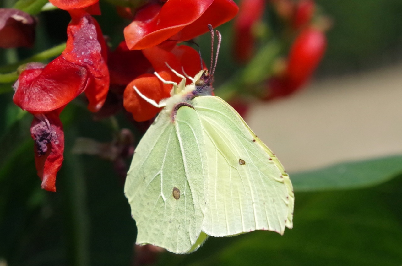 BRIMSTONE BUTTERFLY ON RUNNER BEANS, DORSET
