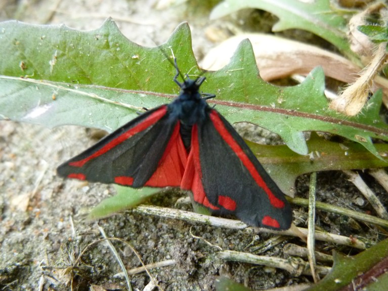 I never got a shot of the full glory of this moth – indeed I had no idea what to expect. Courtesy of wiki, I now realise that beneath the black and white the moth was bright orange.