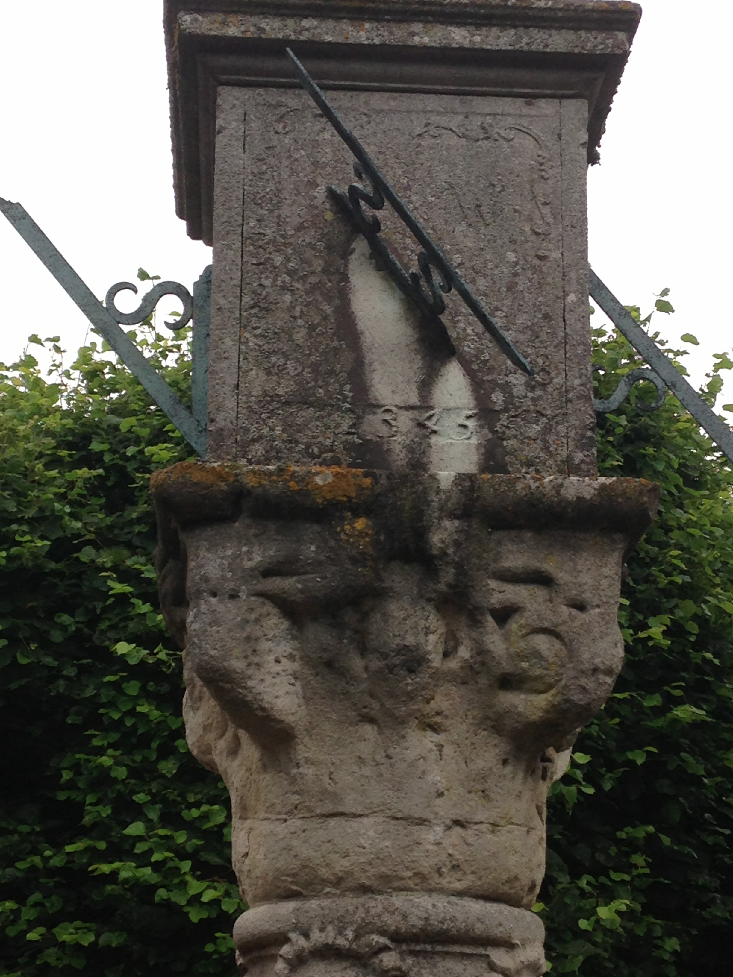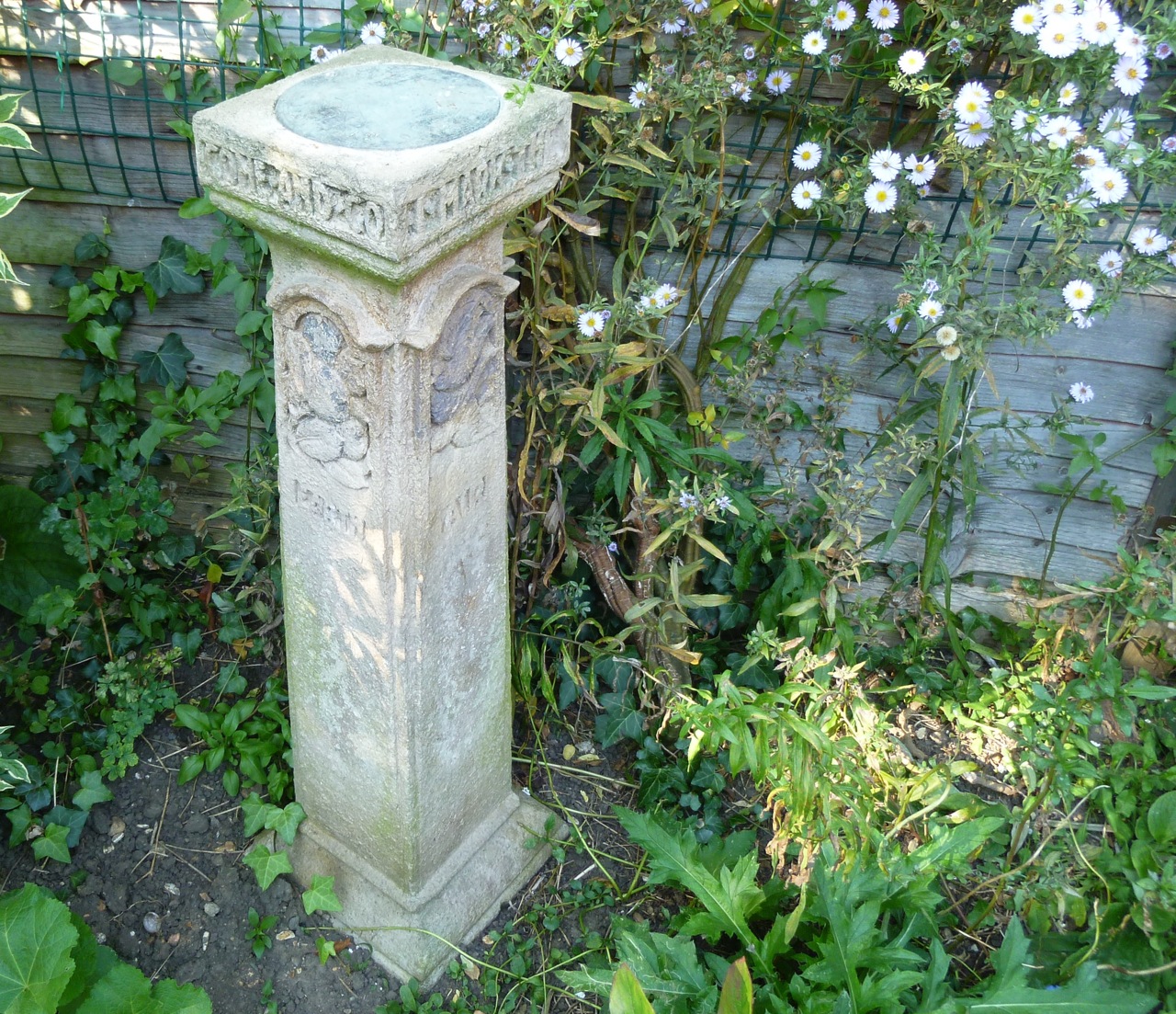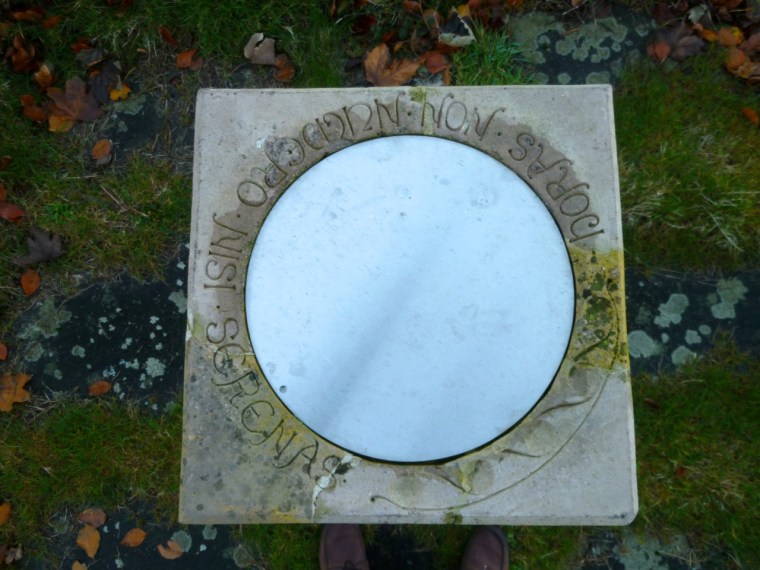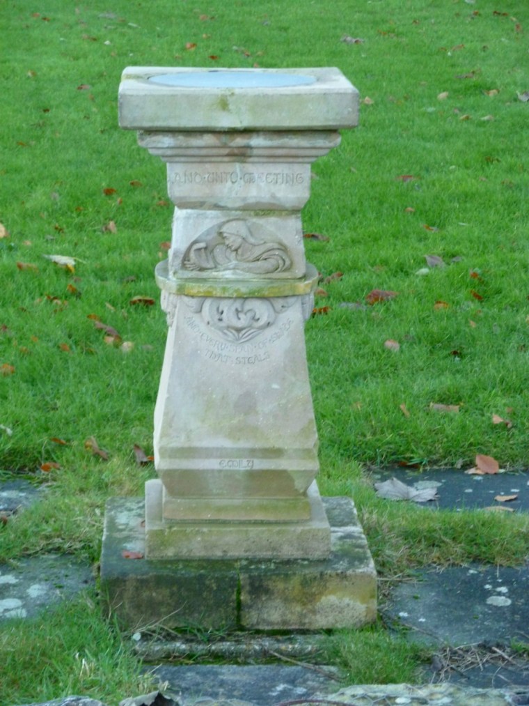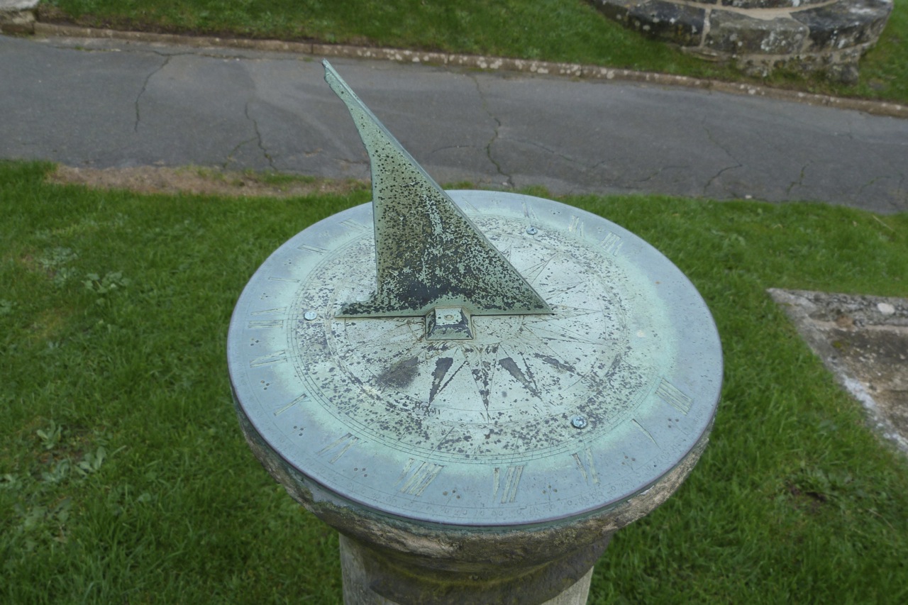Having been told about the three – three! – dials, I was fairly confident when I set out to search for them. The first one – on the porch – was easy, not least because it was on the most obvious, south-facing, location possible. Then the trouble started. Without the Church Warden’s aid, I’d never ever have found the other 2. Who would guess that the dials would be (a) on the north side, (b) a couple of feet off the ground and (c) set at a 90º angle to each other on the same stone block in a buttress.