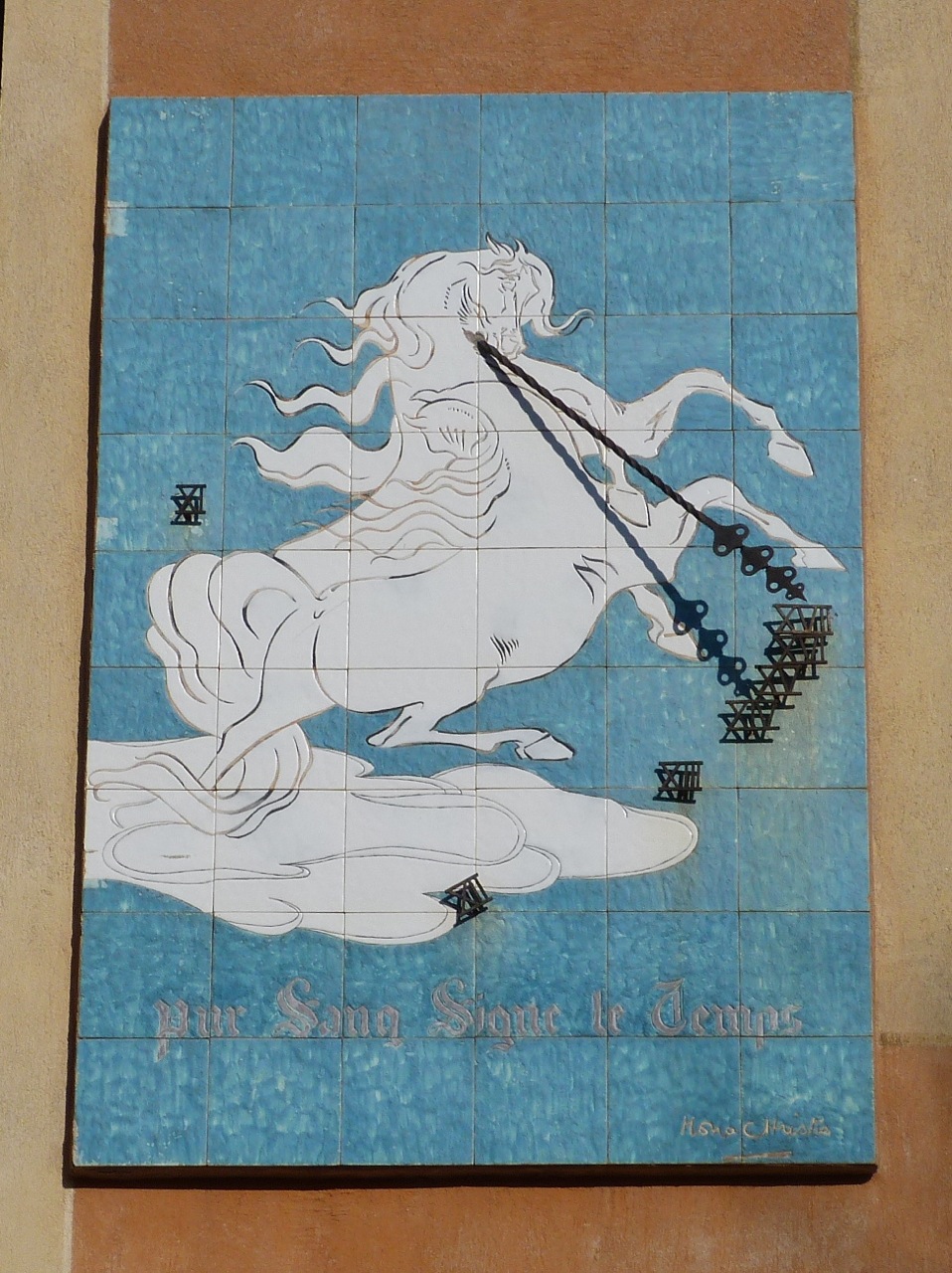 Sundials are an interest but very far from a speciality for me. If anyone can shed any light on dials of this sort – date, construction / design, location on the building – please comment on this post, or email me at rollingharbour.delphi [at] gmail.com. And if you know of a similar dial, please get in touch.